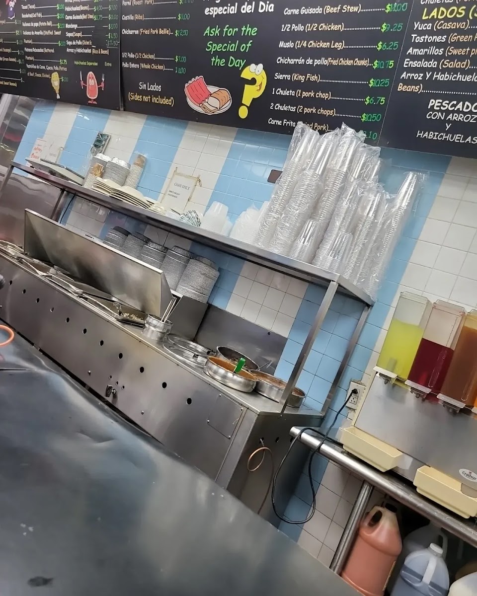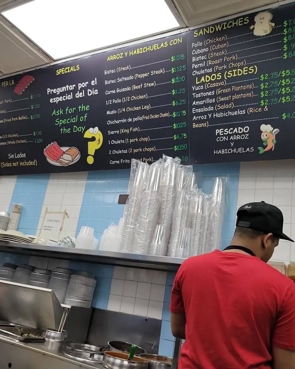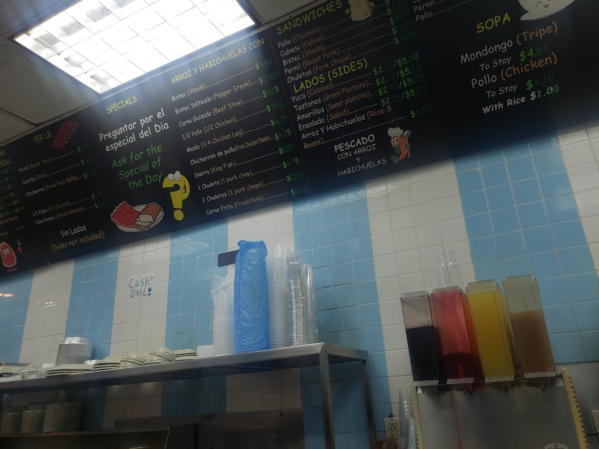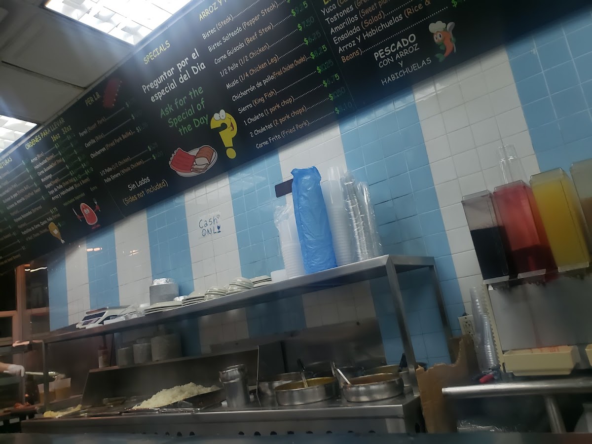 The menu is filled with classic favorites like mofongo, rotisserie chicken, and albondigas alongside authentic bites such as alcapurria and oreja cuchifrito. Plates of arroz con habichuelas (rice and beans) provide a familiar, grounding base for many meals here, while refreshing drinks like passion fruit juice and horchata offer a sweet complement to the savory dishes.